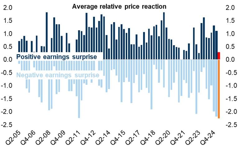 QTD, the reaction of stocks that beat earnings has been far more subdued than the reaction of those that miss earnings.